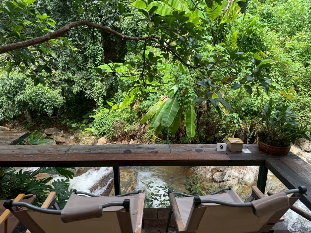 滝の前にある席お天気が良くほんとに気持ちのいい空間でした。