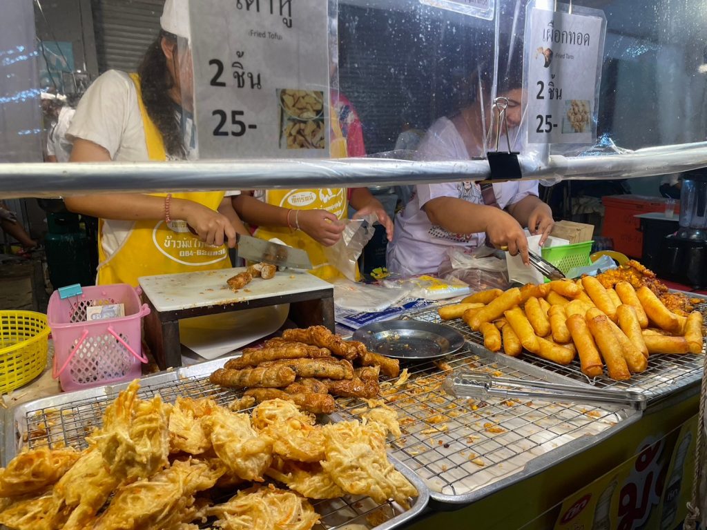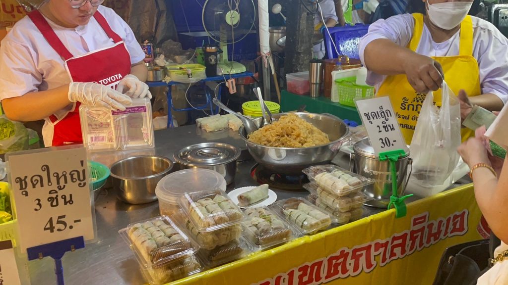 ポピアソッド・ホッケンプーケット名物の福建スタイル生春巻き(ポピアソッド・ホッケン)など、ベジタリアンフードがいたる所で売られています。